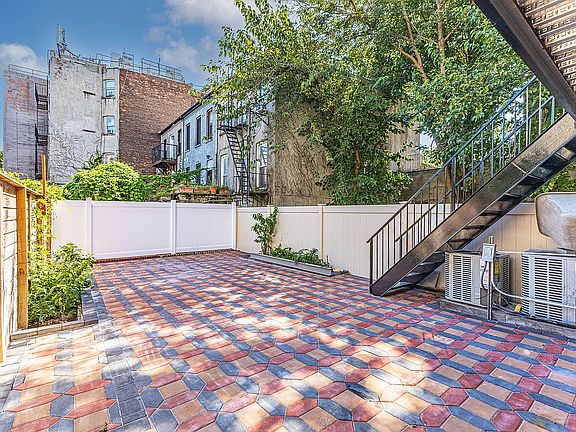 Garden unit: 1BR/1BA. Upper duplex: 4BR/2BA spanning 2nd and 3rd floors. Central A/C, baseboard heat, private backyard. Fully renovated — exposed brick, high ceilings, tile floors, updated kitchens and baths. Near JMZ. Sold for $456K in 2020, renovated, now listed at $1.87M (down from $2M).